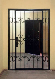 Дверь в общий коридорВ отличие от глухих металлических дверей, решетчатые, которые устанавливаются в качестве тамбурных на лестничной клетке в подъезде: